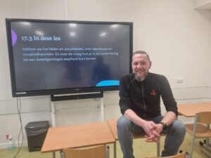 “Collega’s vinden het soms toch wel spannend om het gesprek aan te gaan in de klas. Ze weten niet goed hoe en kiezen er dan voor om het te laten. Wat ik op zich ook een verstandige keuze vind. Maar natuurlijk kun je de hulp van je collega’s inroepen. Dat is misschien inherent aan het docentschap, maar ik merk aan collega’s dat ze denken “ ik moet het zelf oplossen”. En ik denk dat je juist met elkaar jezelf ook sterker maakt. Wij zijn een informele school met een informele cultuur. En je kunt je best kwetsbaar opstellen bij ons, maar ik merk dat docenten toch vaak denken ‘dat is mijn probleem en dat moet ik zelf oplossen’.