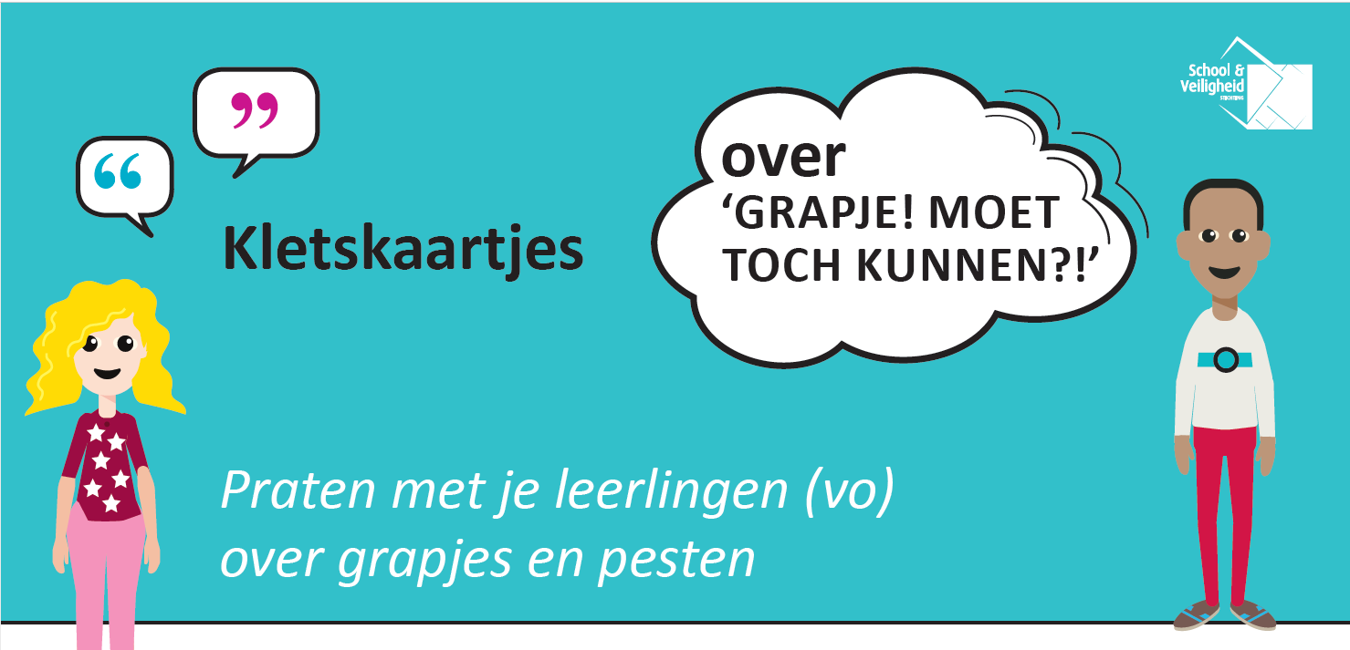 Grapjes kunnen bijdragen aan een fijne sfeer in de groep. Samen lachen en plezier hebben zorgt voor verbinding en betrokkenheid. Maar grapjes zijn niet altijd leuk en kunnen anderen ook pijn doen. Met de kletskaartjes ‘Grapje! Moet toch kunnen?!’ ga je hierover in gesprek met je leerlingen.