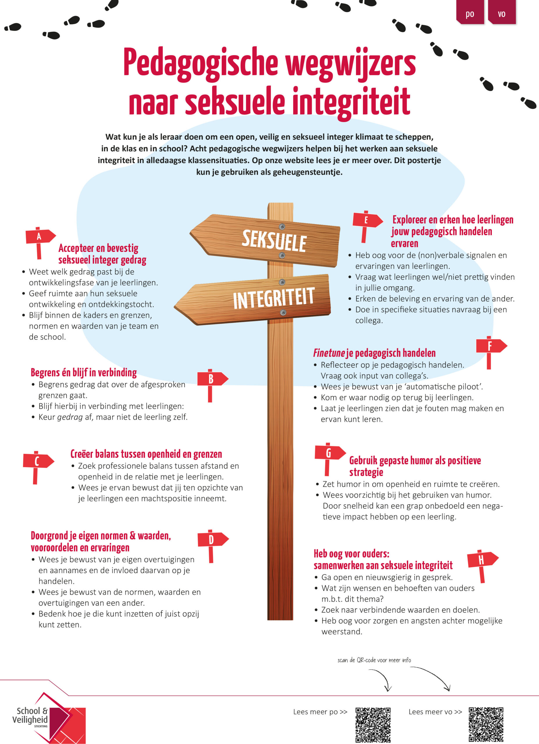 Een poster met pedagogische wegwijzers naar seksuele integriteit (po) na Schedulenintegriteit. School en Veiligheid